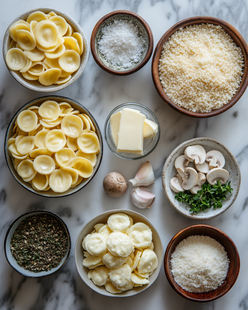 Ingredients for Cheesy Orecchiette Gratinate alla Boscaiola