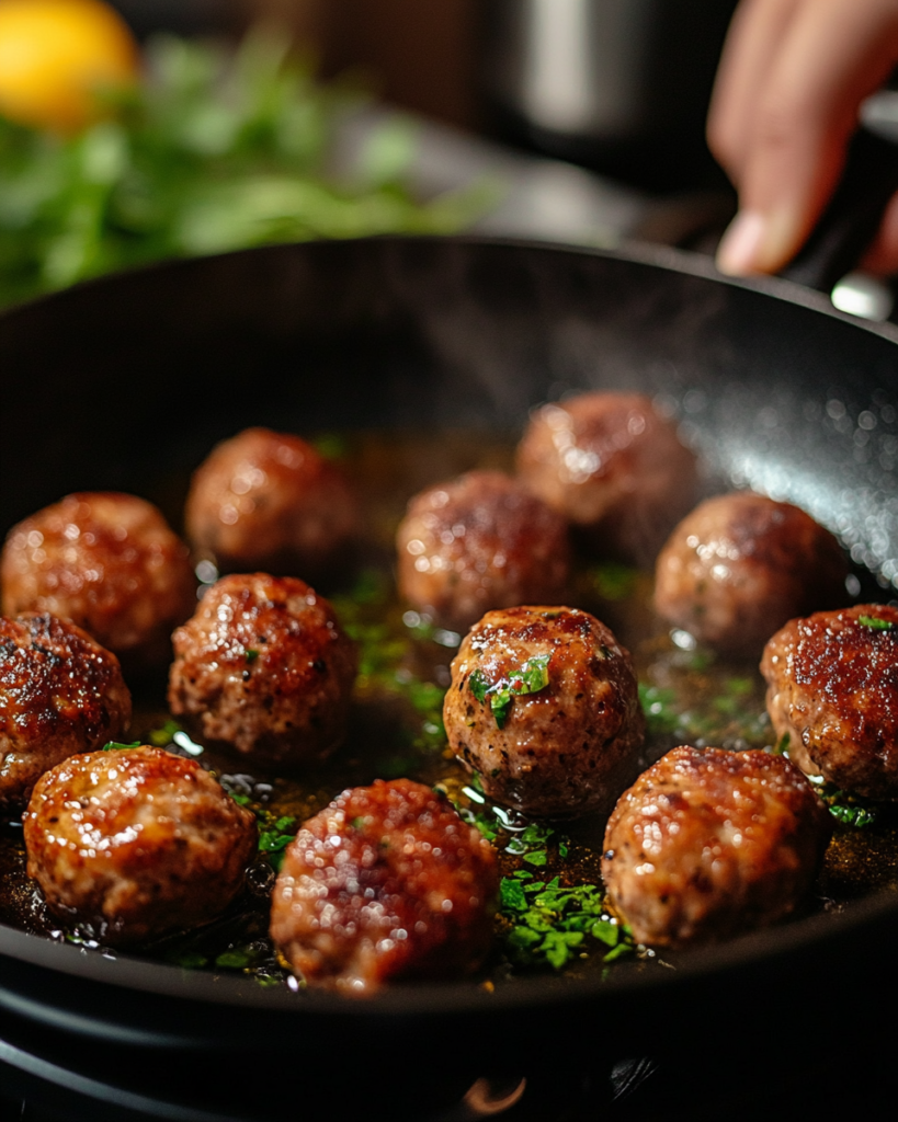 Once your mixture is ready, roll the meat into 1.5-inch balls. Place them on a baking sheet lined with parchment paper, ready to be browned. Browning the meatballs before baking enhances the flavor, creating a savory crust that locks in juices. Heat a tablespoon of olive oil in a large skillet over medium heat, and brown the meatballs on all sides. They don’t need to be fully cooked at this stage, as they’ll finish cooking in the oven with the sauce.