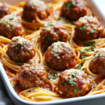 The inspiration behind this recipe comes from traditional Italian-American kitchens, where Sunday dinners meant a family gathered around the table, sharing stories over a hearty meal. This baked version elevates the classic spaghetti and meatballs experience by layering the flavors in a casserole and finishing it in the oven, ensuring that every noodle and meatball is infused with rich sauce and cheese. It’s a dish that invites everyone to slow down, savor, and celebrate the simple joy of comfort food.
