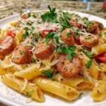 There are certain meals that instantly make you feel at home, no matter where you are or how busy life becomes. Pasta is one of those timeless comforts, and this Comforting Pasta Sausage Delight is a dish designed to wrap you in warmth from the very first bite. It’s the kind of recipe that fits perfectly into a quiet evening at home, a casual family gathering, or even a relaxed weekend dinner when you want something nourishing without being complicated.
