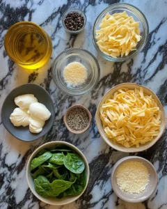 While the pasta cooks, prepare the spinach. Bring another pot of water to a gentle boil. Add cleaned spinach leaves and blanch for about 2 minutes until wilted and bright green. Immediately transfer the leaves to a bowl of cold water to preserve color. Drain thoroughly and squeeze gently to remove excess moisture.