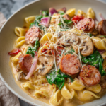 A creamy, comforting one-pot pasta made with chicken or beef kielbasa, perfect for busy evenings and cozy family meals.