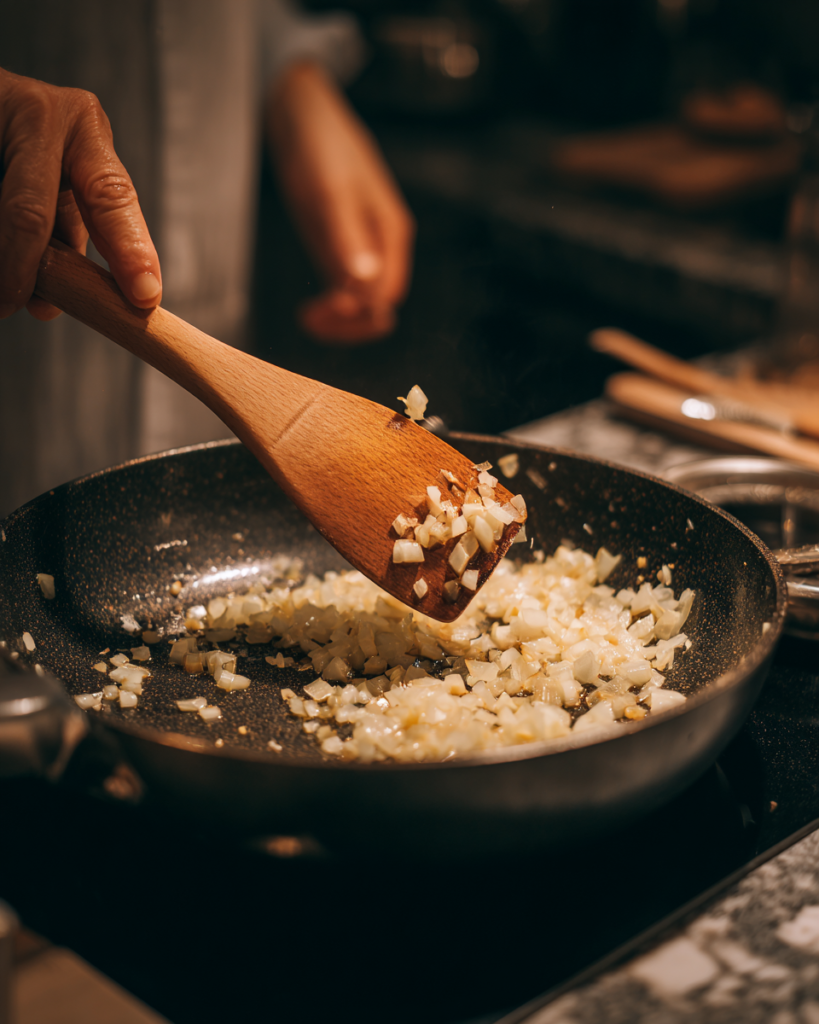 In the same pot, add the chopped onion. Sauté for about 3 minutes until softened and translucent. Stir occasionally to prevent browning. Add the minced garlic and cook for an additional 30 seconds, just until fragrant.