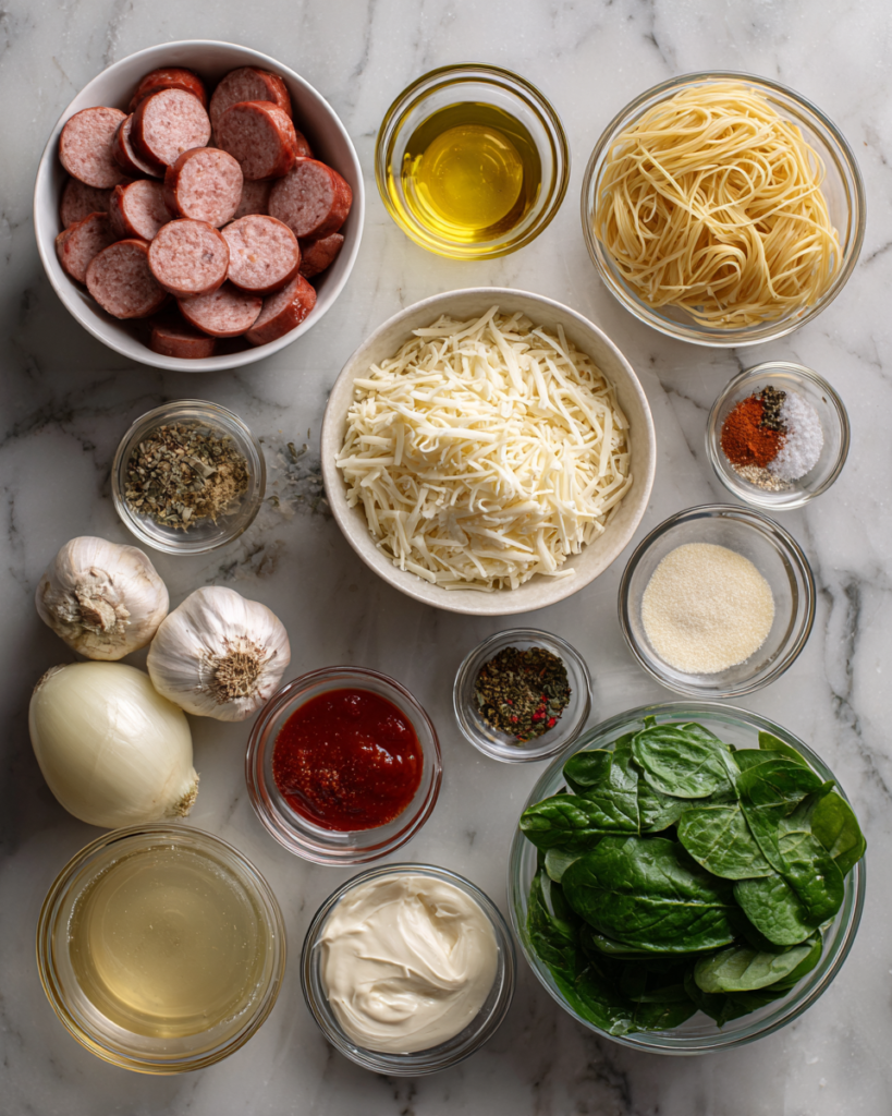 This dish shines because it balances practicality with flavor. The one-pot method saves time and effort, while the combination of smoky kielbasa, tender pasta, and creamy sauce feels indulgent and satisfying. It is the kind of meal that makes weeknights easier and family dinners more enjoyable.
