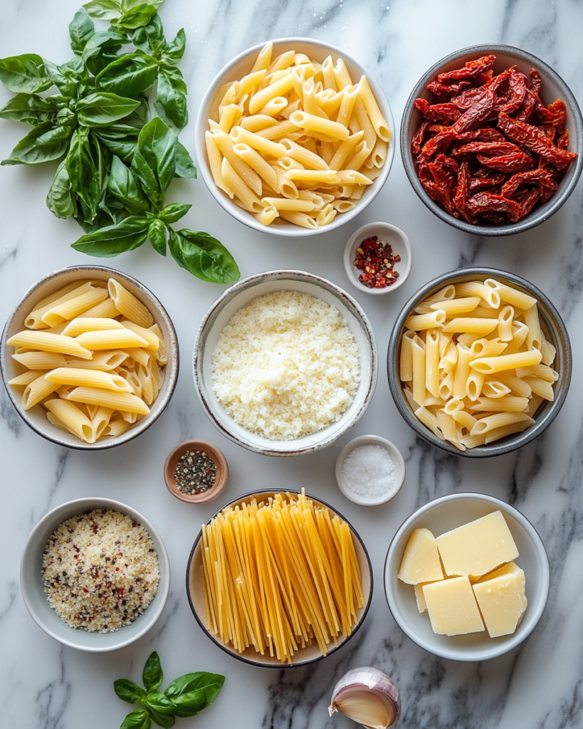 A creamy, flavorful pasta made with sun-dried tomatoes, garlic, and herbs—perfect for quick and satisfying weeknight meals.