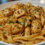 This creamy, buttery pasta dish combines tender chicken, a smoky garlic sauce, and perfectly cooked pasta for the ultimate comfort food experience.