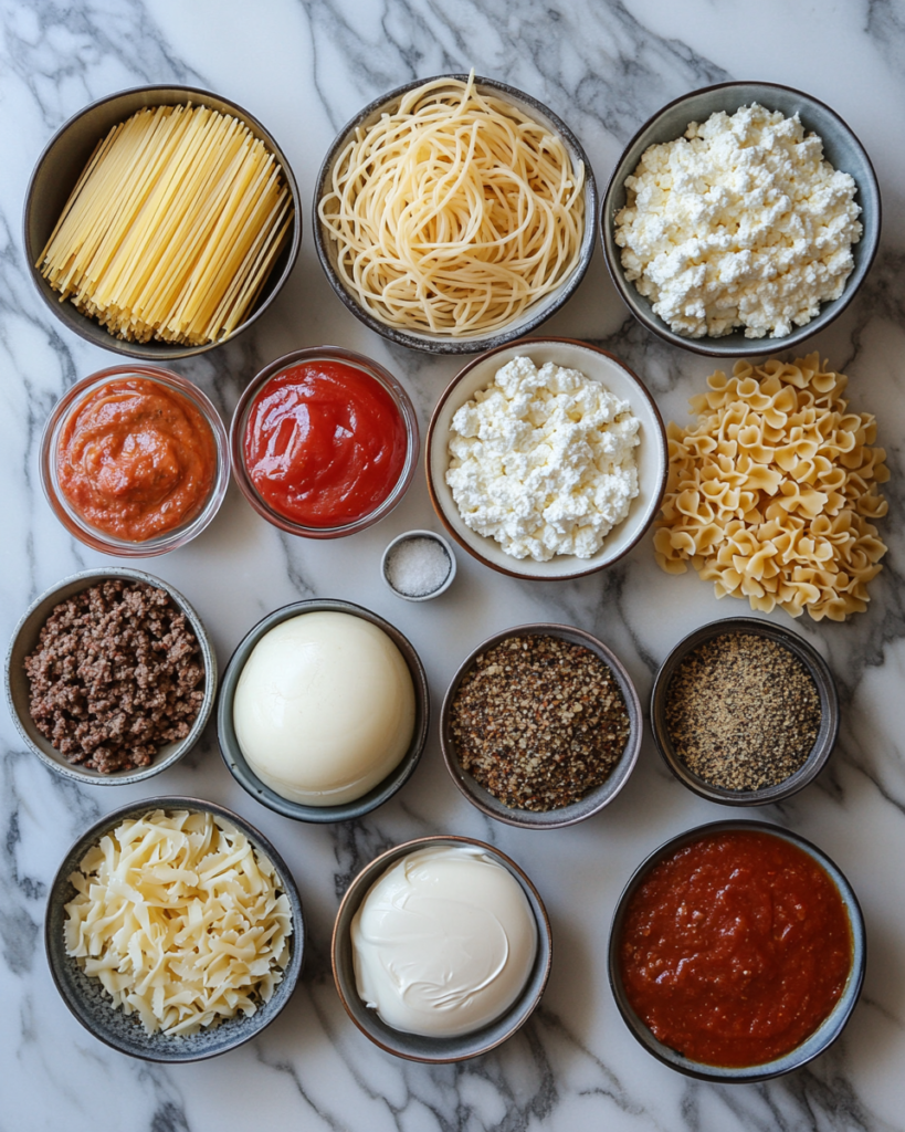 To make this creamy beef pasta, you’ll need a combination of pantry staples, fresh ingredients, and dairy to create the rich, satisfying sauce. Each ingredient plays a role in building the depth and flavor that make this dish so irresistible.