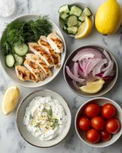 A refreshing, protein-packed chicken salad inspired by classic Greek tzatziki, made with creamy yogurt, crisp cucumber, fresh dill, and bright lemon.