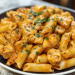 A rich, indulgent pasta dish with tender chicken and a creamy garlic butter sauce that’s perfect for cozy dinners or special occasions.