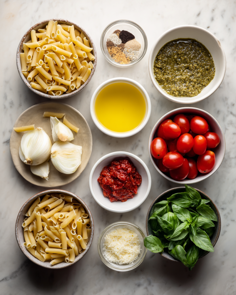 The inspiration behind this recipe comes from the idea of simplicity without sacrificing flavor. Creamy pasta dishes are often associated with indulgence and complexity, but this version proves that you can achieve rich, satisfying results using a single pot and straightforward ingredients. The combination of tender pasta, velvety sauce, and fragrant pesto creates a meal that feels nourishing and complete. It is the kind of dish that brings people together around the table, encouraging slow bites, conversation, and the simple pleasure of a warm, delicious meal.